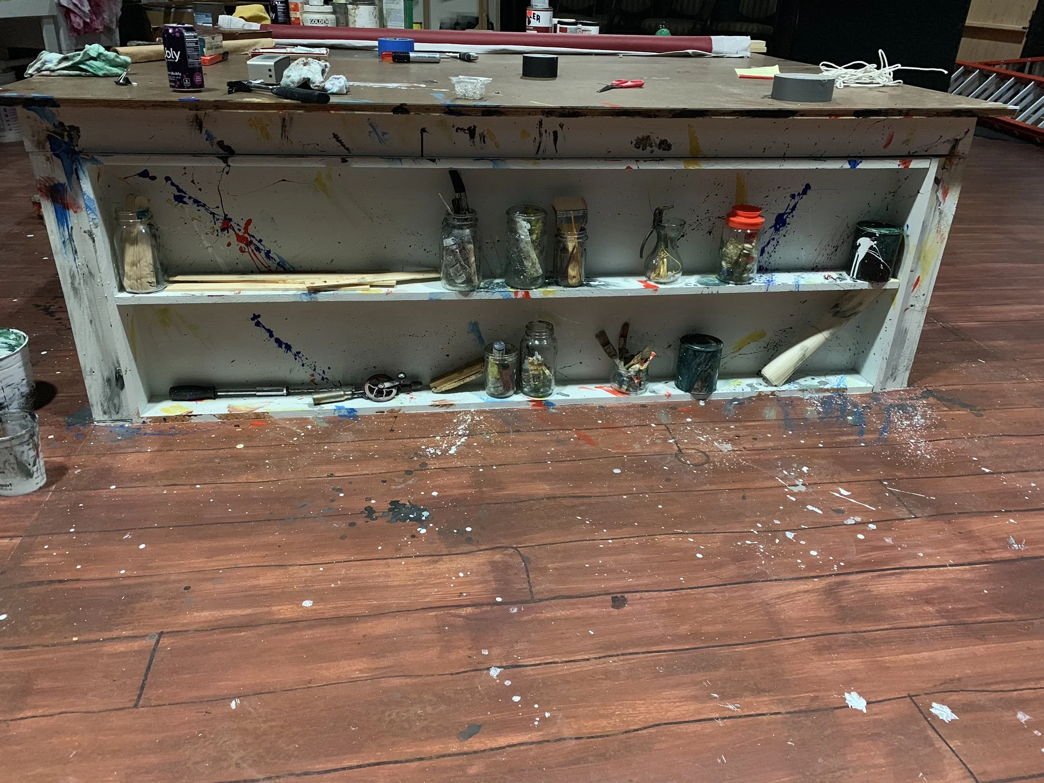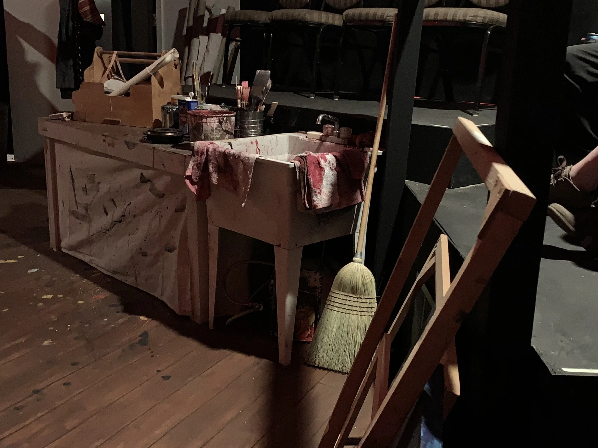 Set Design: Red, Mark Rothko’s Studio. A small arena theatre, close to the set. Utilizing all vintage materials.